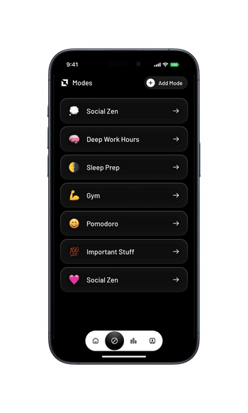 Bundle your distractions into custom focus modes like Work, Study, Gym, or Social. Tap your card to switch - no apps to open, no settings to fiddle with.